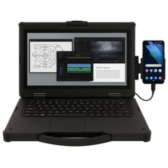 Grand écran de 12,2″, avec digitaliseur actif, Intel® Core™ i7-1255U, avec 16 Go de RAM. Batterie remplaçable avec outils. Certifications MIL-STD-810 / IP65.